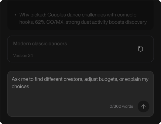Pulse identifies creators similar to your top picks and keeps them ready, so if someone goes unresponsive, momentum stays intact.